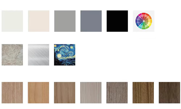 Standardfarben (Silbergrau, Champagnergold, Elfenbeinweiß usw.) unterstützen die Anpassung der Pantone-/Pantone-Farben