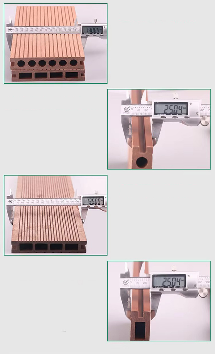 Material: Holzfaser/Bambusfaser, flammhemmendes PVC-Harz/Kalziumkarbonatpulver (optional), Oberflächenbeschichtung (UV-/Holzmaserungsübertragung)