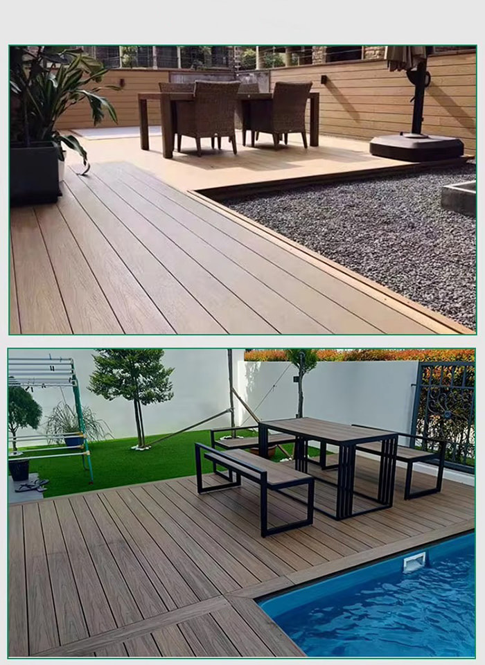 WPC-Boden (Wood Plastic Composite) ist ein neuartiger umweltfreundlicher Boden aus Holzfasern oder Bambusfasern als Kernrohstoff, der durch Hochtemperatur- und Hochdruckverfahren mit PVC-Harz, Flammschutzmittel usw. verbunden wird. Seine Struktur ist in vier Schichten unterteilt: verschleißfeste Schicht (UV-Beschichtung), dekorative Schicht aus Holzmaserung/Steinmaserung, Schicht aus faserverstärktem Grundmaterial und geräuscharme Schicht. Es hat sowohl die Textur von echtem Holz als auch die Wasser- und Feuchtigkeitsbeständigkeit von Kunststoff und eignet sich für die Bodendekoration im Innen- und Außenbereich.