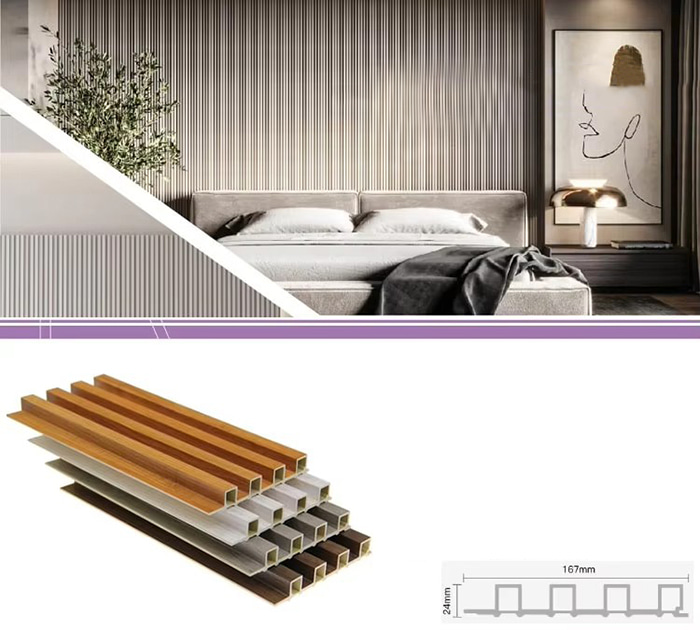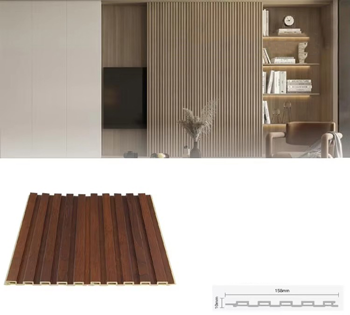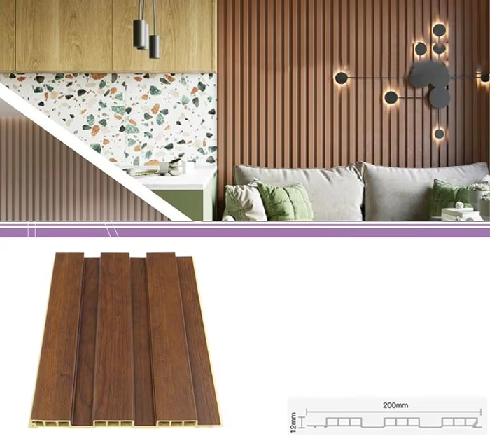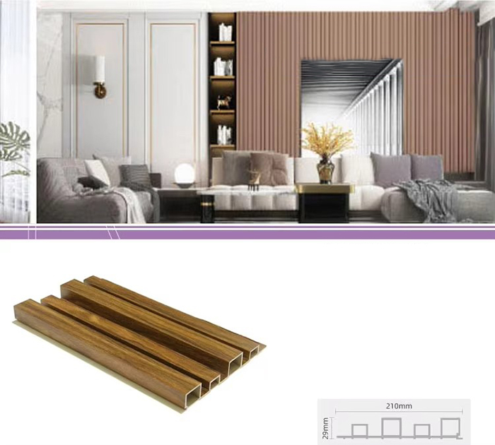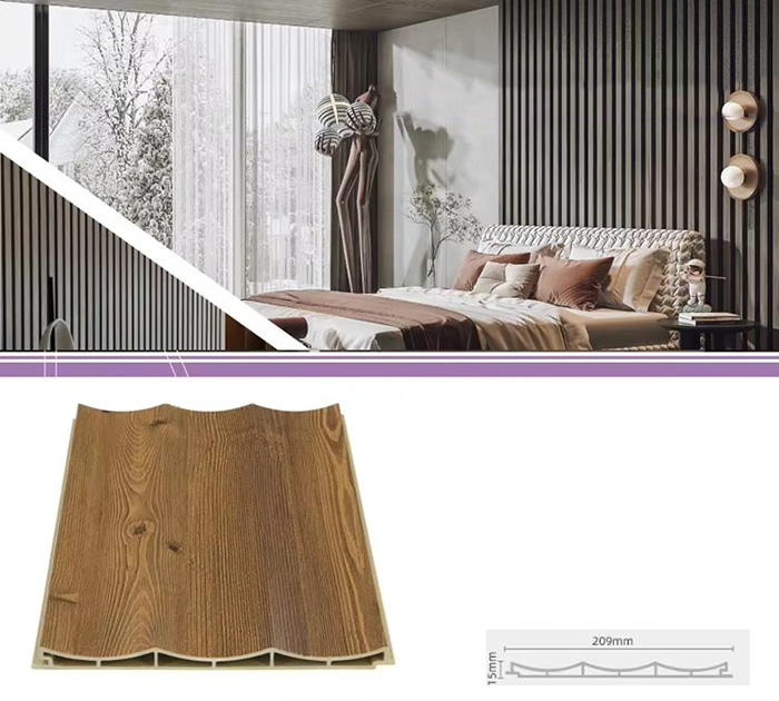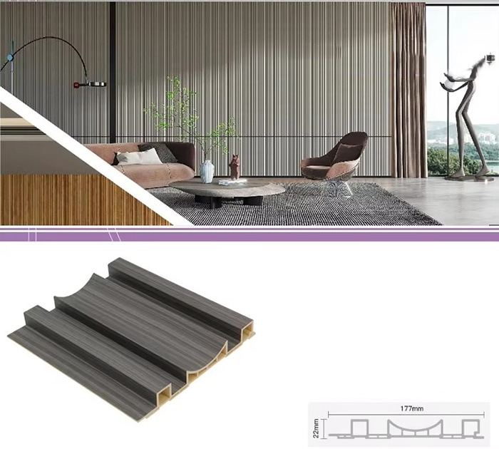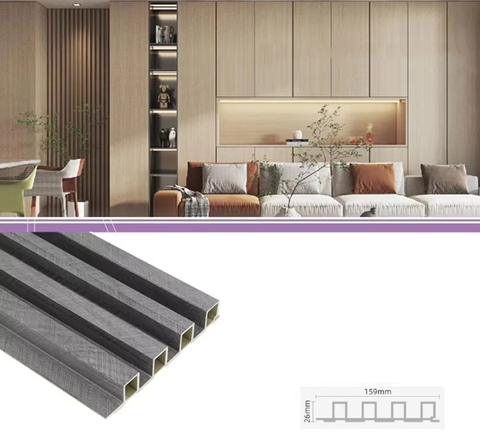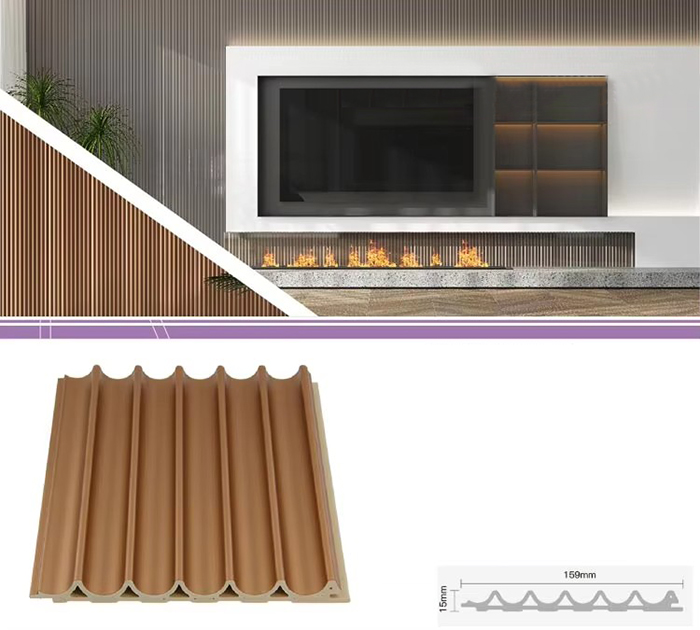WPC-Innenpaneele oder Holz-Kunststoff-Verbundplatten für den Innenbereich sind ein neuartiger umweltfreundlicher Baustoff aus Holzfasern oder Holzpulver in Kombination mit Thermoplasten (wie Polyethylen, Polypropylen oder Polyvinylchlorid). Dieses Material wird durch einen Hochtemperatur-Extrusionsformprozess hergestellt und die Oberfläche wird normalerweise durch Laminierung, 3D-Druck oder Folienkaschierung dekoriert. Sie weist eine natürliche Textur auf und fühlt sich holzähnlich an, weist aber gleichzeitig die Haltbarkeit und Wetterbeständigkeit von Kunststoff auf. WPC-Paneele für den Innenbereich haben nicht nur das schöne Aussehen von Holz, sondern überwinden auch die Nachteile von Holz wie leichte Verformung, Feuchtigkeitsaufnahme und Fäulnis, was sie zu einem idealen Material für die Innendekoration macht