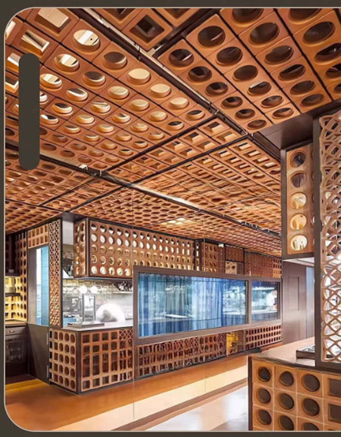 Architektonische DekorationInnenwand/-decke: Designs wie Metallbürsten und Holzmaserung verbessern die Textur des Raums und eignen sich für Hotels, Ausstellungshallen, Villen usw.