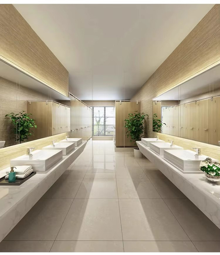 Gewerbeflächen Hotel/Einkaufszentrum: Das Holzmaserungs-/Steinmaserungsdesign verbessert die Struktur des Raums und unterstützt eine schnelle Demontage und Renovierung (Wiederverwendungsrate ≥ 90 %).